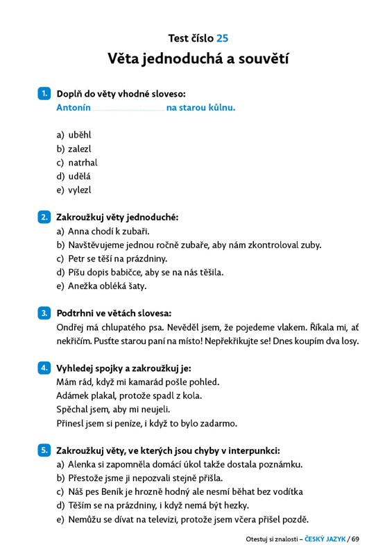 Testové úlohy z učiva českého jazyka jsou připraveny tak, aby pokryly všechna témata, o kterých se ve 3. třídě učíte. Vyhodnocení testů najdete v klíči na konci knihy.