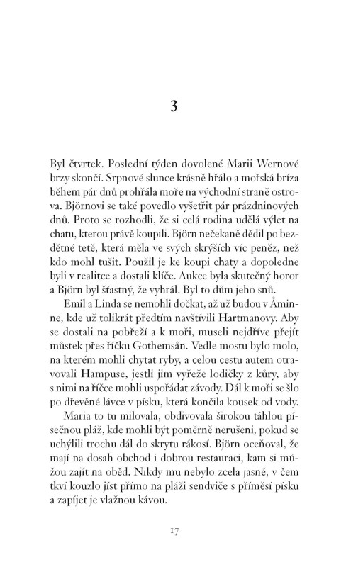 Policistka Maria Wernová tráví s rodinou dovolenou v nově zakoupené chatě u moře. Pozdní léto na Gotlandu působí idylicky. Moře, slunce, lodě, všude samé známé tváře, protože na ostrově zná každý každého...