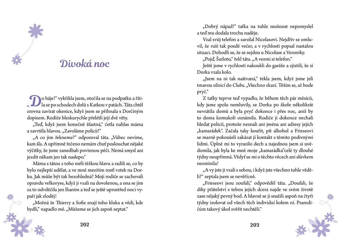 Šarlota rozhodně nejásá nadšením, když zjistí, že její kdysi nejlepší kamarádka Dorka má jet s nimi na dovolenou na Noirmoutier. Vždyť už spolu skoro ani nemluvily! Ovšem pak zapůsobí kouzlo francouzského ostrova: úžasné vyjížďky po pláži a mezi slanisky znovu utuží staré přátelství. To však zcela znenadání dostává nové trhliny. Šarlotu však zaměstnávají i jiné problémy a po dovolené si do Německa přiváží nečekaný přírůstek...