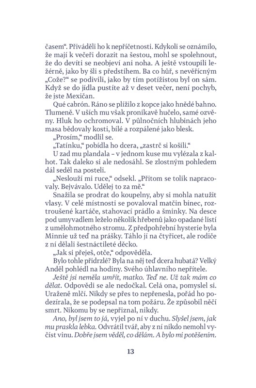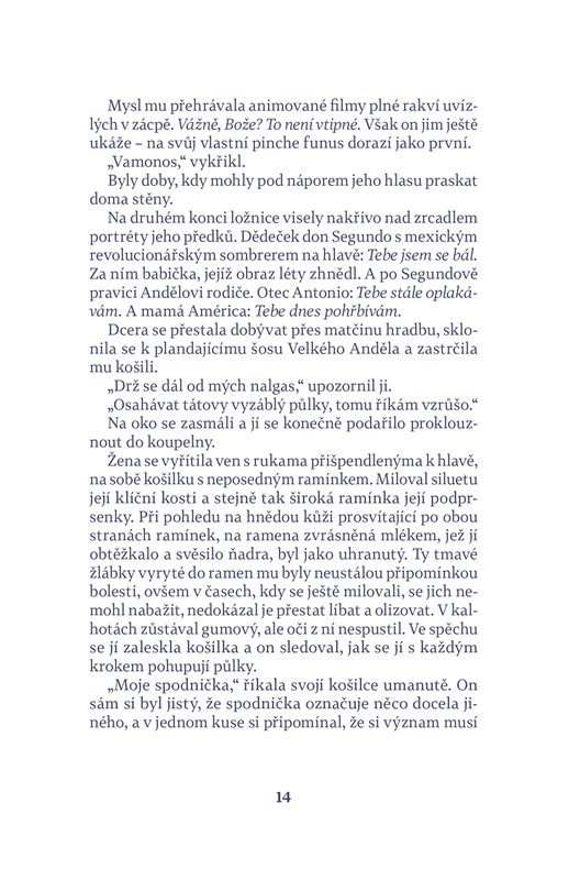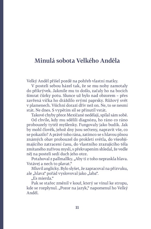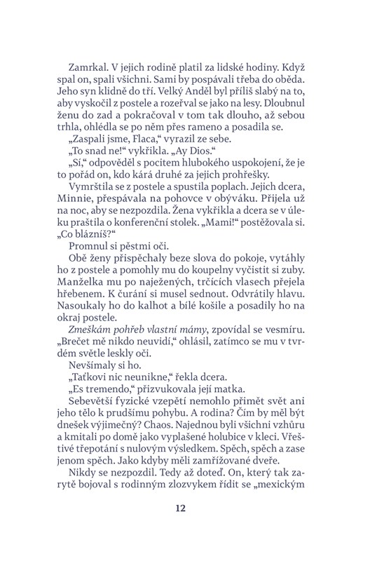 Román amerického spisovatele Luise Alberta Urrey se odehrává v prostředí Američanů mexického původu, kteří mají dvojí, americkou i mexickou kulturní identitu. Centrem příběhu je rodinná oslava klanu De La Cruzových, jehož hlava, Miguel Angel zvaný Velký Anděl, umírá na rakovinu a chce oslavit poslední narozeniny v kruhu rodiny. Těsně před plánovanou oslavou na předměstí San Diega ale zemře jeho matka, těsně před stými narozeninami, a rodinné setkání tak získává zcela novou podobu. Mezi hosty je i oslavencův nevlastní bratr, Malý Anděl, jehož matkou byla Američanka a který si v průběhu oslavy uvědomuje, nakolik je jeho život odlišný od života jeho příbuzných. Knihou kromě jemného a inteligentního humoru prostupuje téma rodiny a síly, ale i tíhy rodinných vazeb, a vyrovnávání se s kulturní odlišností.