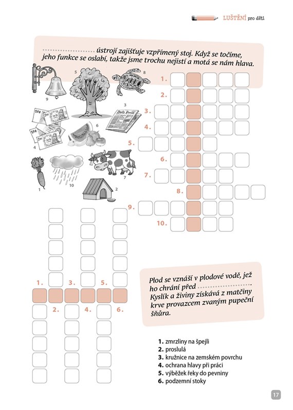 Křížovky vytvořené na míru dětem! Vychází ze slovní zásoby žáků 1. stupně ZŠ. Tentokrát se zajímavostmi o lidském těle.