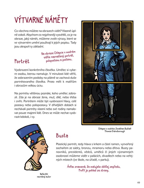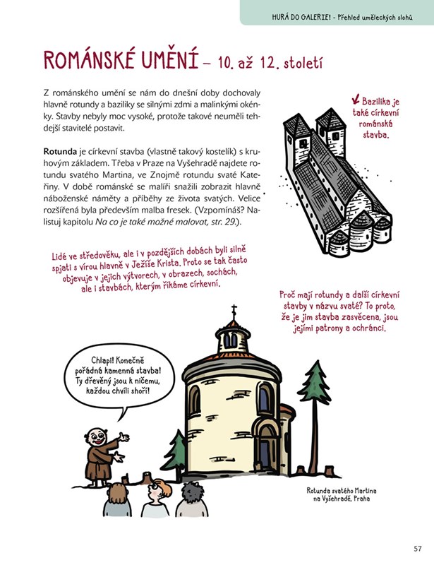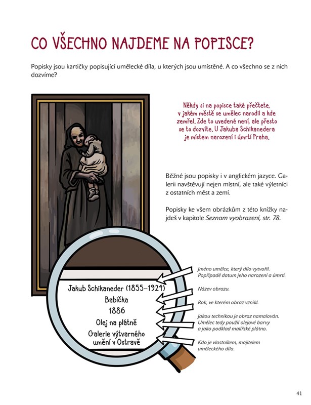 Co je to galerie? K čemu slouží? Co v ní můžete vidět? Jak vznikají obrazy a sochy? Čím a na co se maluje a jaké další výtvarné techniky existují? Nejen to se dozvíte, když se s námi vydáte na poznávací výlet do světa výtvarného umění. Cesta povede napříč staletími i uměleckými styly. Provázet vás budou veselé ilustrace, díky nimž si pojmy ze světa výtvarného umění snadno zapamatujete. Seznámíte se s nejvýznamnějšími díly historie a umělci, kteří je vytvořili. Nechybí výtvarné aktivity, díky kterým se i z vás stanou experti na umění, nebo dokonce samotní umělci!