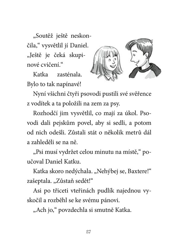Katka, Mája a Gábina dostaly speciální úkol. Teta Jana je požádala, aby cvičily Báru, čtyřměsíční štěně bernského salašnického psa, které se brzy zúčastní své první výstavy. Děvčata brala Báru do parku, kde s ní trénovala jednoduché povely. Seznámila se tam s Robertem a jezevčíkem Baxterem. Baxter je úžasný! Zato cvičit Báru není tak snadné, jak se zdálo. Katka je otrávená a vyčítá novým kamarádům, že štěně rozptylují.