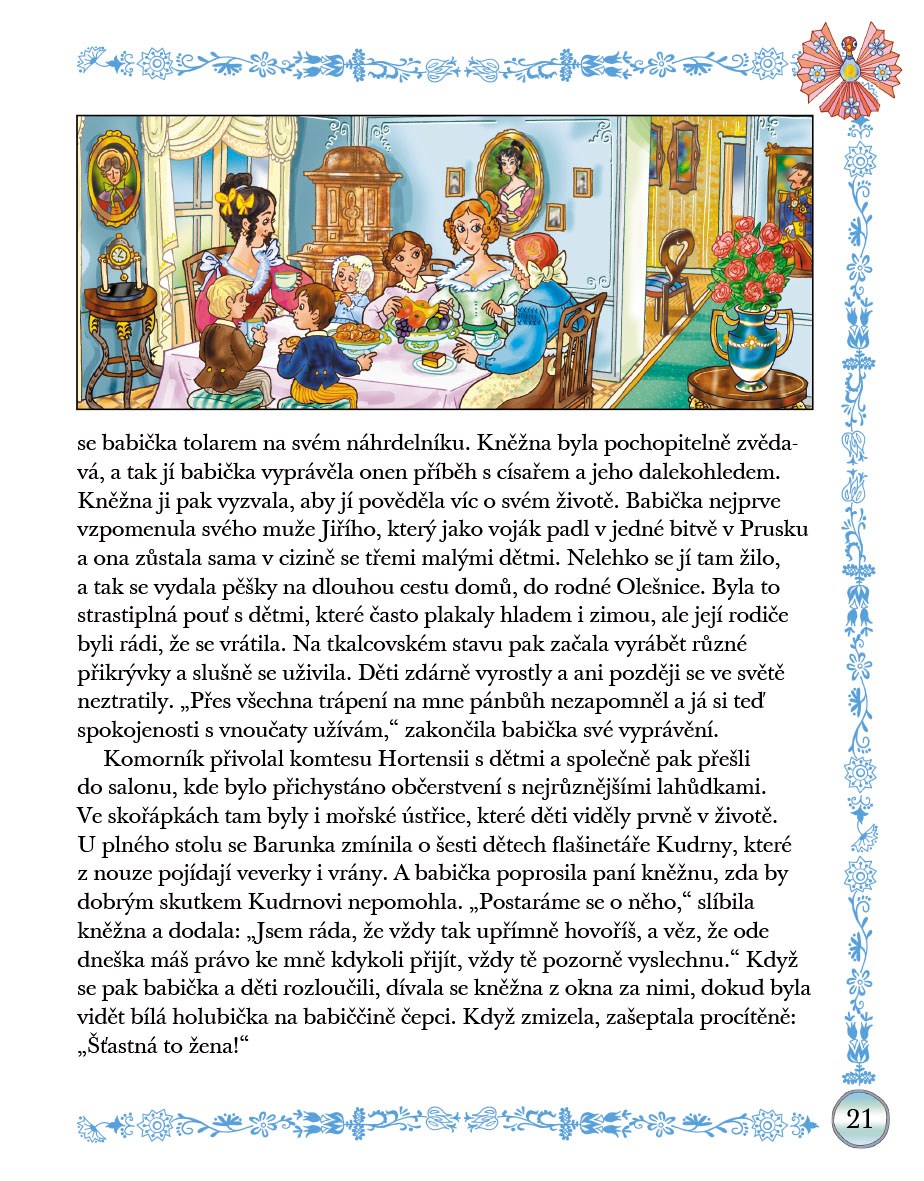 Prostou, avšak moudrou babičku Boženy Němcové zná téměř každý. Její příběh je převyprávěn tak, aby si jej mohli přečíst i malí čtenáři.