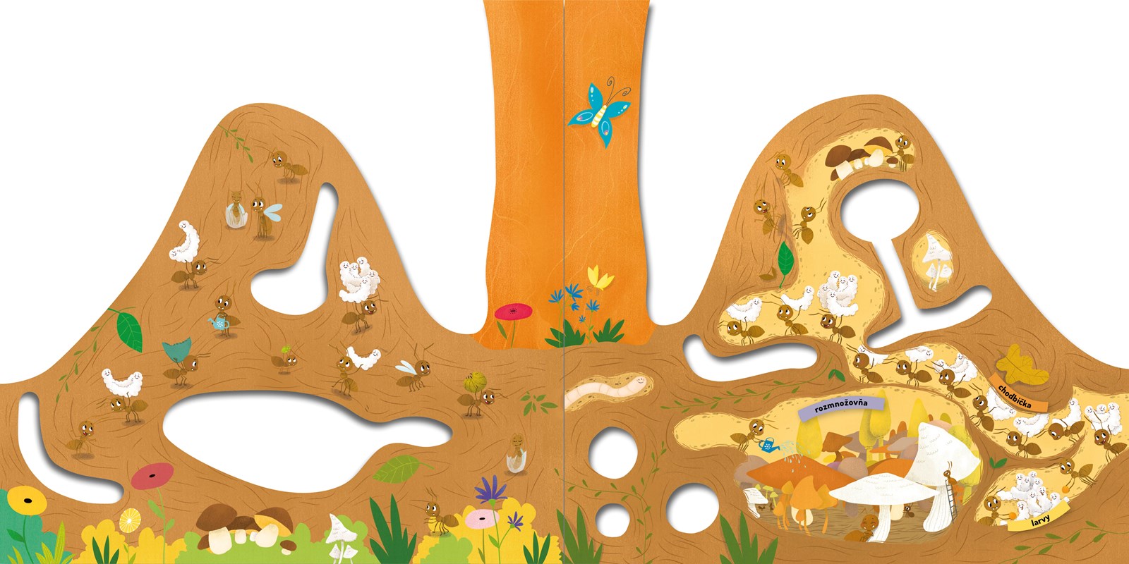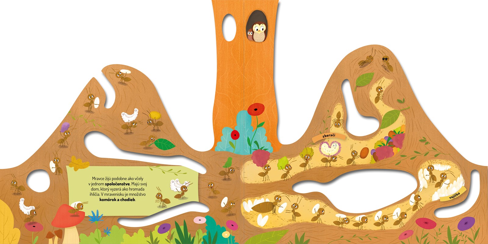 Predstav si, že si mravec a stráviš jeden deň v mravenisku. Aké to asi bude? Celý deň sa budeš stále niekam ponáhľať – upratovať a hĺbiť chodbičky, hľadať rôzne semienka, aby si mal čo jesť, a keď ťa to prestane baviť, vylezieš úplne hore na vrch mravčej kopy, aby si sa opaľoval a nahrieval si telíčko. Ale dosť už bolo rečí. Vieš čo? Urob si pohodlie a poď sa s nami pozrieť priamo do mraveniska...