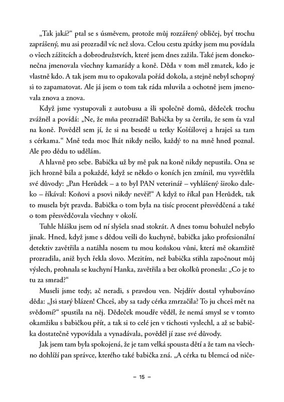 Když pochopila, že si děda střílí z ní, vylezla. Jeho další moudra o tom, že cest, po kterých se člověk může v životě vydat, je nepočítaně a že za svá přání a touhy se vyplatí bojovat, si však vzala k srdci.