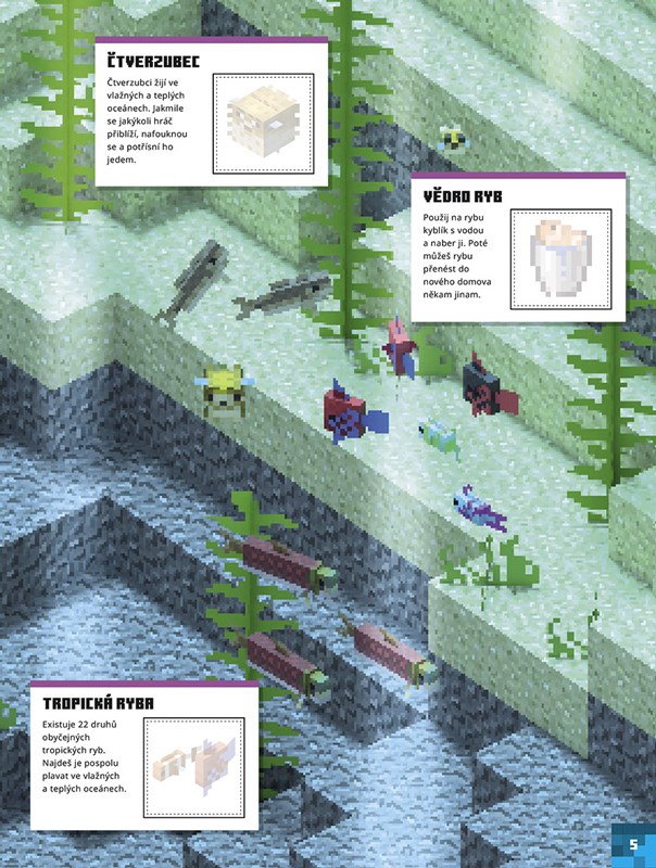 Kniha se spoustou samolepek, která pomůže přežít v pozoruhodných oceánech Minecraftu!