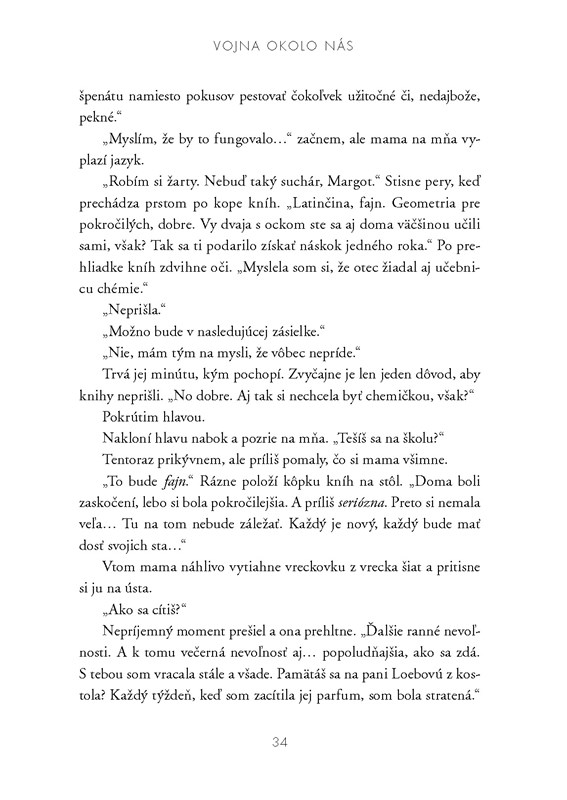 Vojna okolo nás je krásnou knihou o osudoch obyčajných ľudí, ktorých zasiahla vojna a ktorí museli nájsť odvahu žiť v krajine, ktorá ich neprijímala. Zároveň je to však príbeh o priateľstve dvoch dievčat, o zložitých rodinných vzťahoch a neistote, ktorá prichádza ruka v ruke s vojnou. Všetko podčiarknuté úžasným štýlom autorky, ktorá dokáže postavy priam oživiť. Túto knihu naozaj veľmi odporúčam! :)
