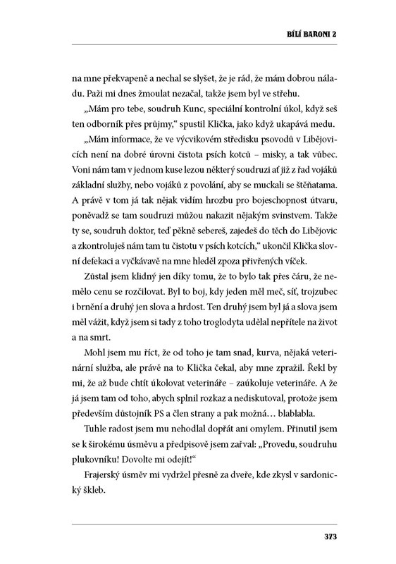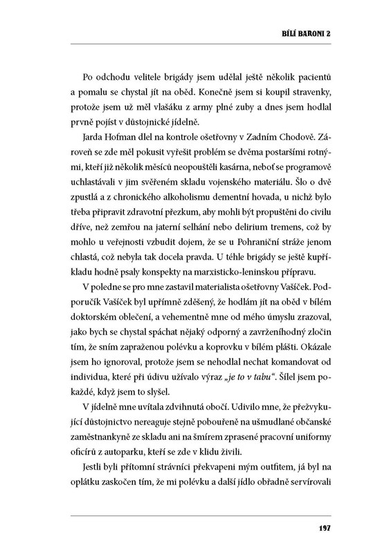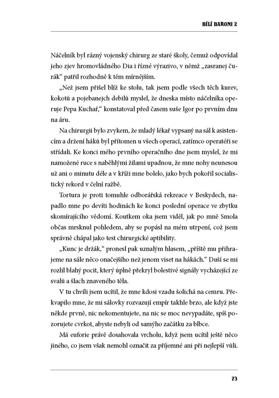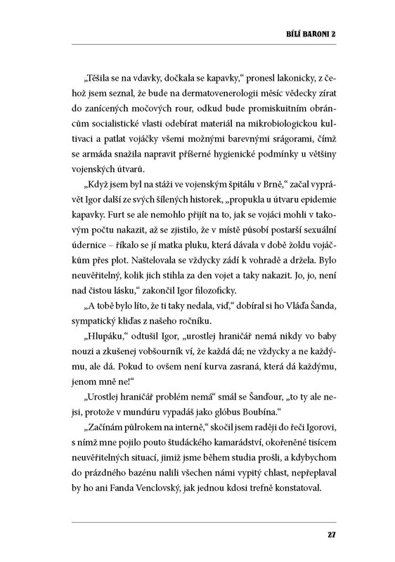 Michal Kunc vystudoval vojenskou medicínu a domníval se, že bude především léčit vojáky. To bychom ale nemohli být v Československu 70. a 80. let, kdy bylo útvarovým vojenským lékařům medicínské vzdělání spíš na obtíž a kdy jejich zdravý rozum narážel na nepřekonatelnou stupiditu „socialistických důstojníků“. Konflikt mezi normálním myšlením a „lampasáckou logikou“ nutně přinášel humorné, neuvěřitelné a někdy i tristní zážitky, s nimiž se vojenští lékaři museli vyrovnávat. Kniha nás od začátku rozesmává, ale na konci nás také nutí k zamyšlení nad absurditou nedávno minulé doby.