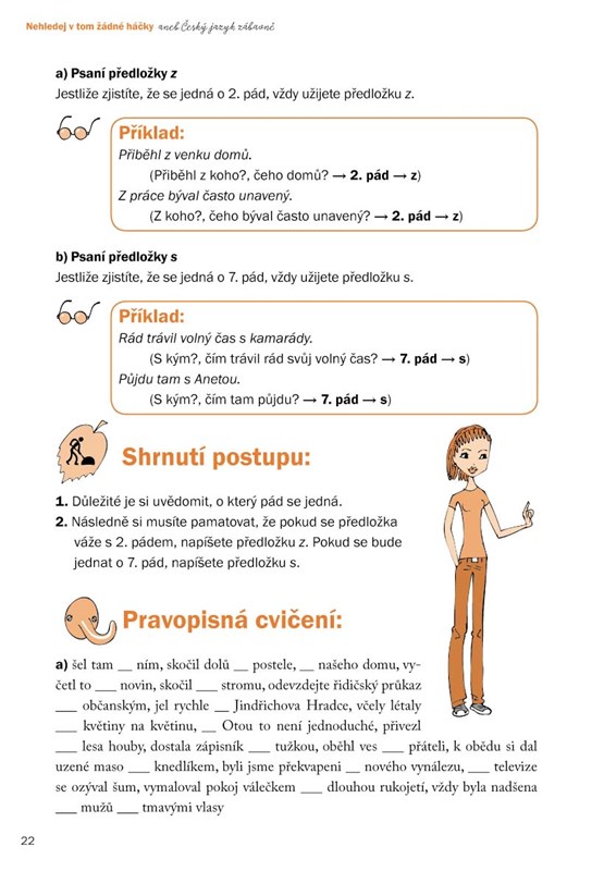 Český jazyk má sice spoustu háčků, s naší cvičebnicí však nad nimi vyzrajete. Pravopisné záludnosti vám nejprve srozumitelně vysvětlíme. Zdali jste vše dobře pochopili, můžete otestovat vyplněním pracovních listů. Najdete v nich klasická pravopisná cvičení, ale i zábavné úkoly, které vás donutí přemýšlet, pracovat s textem, tvořit či luštit rébusy.