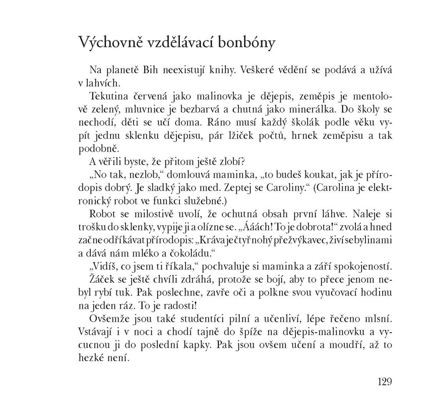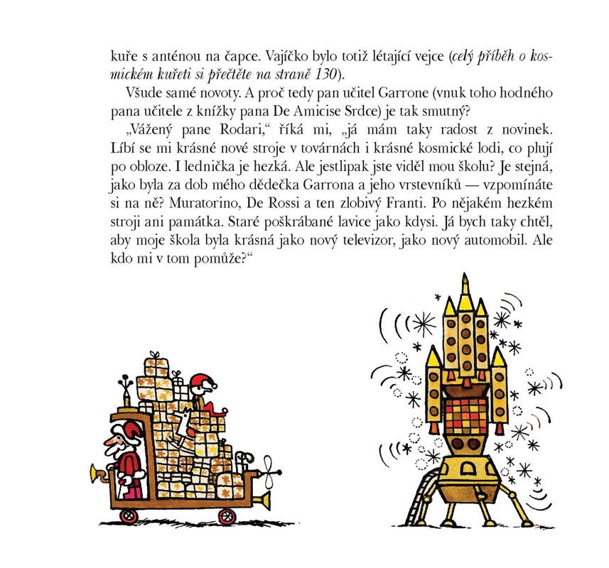 Byl jednou jeden pan Bianchi. Trávil hodně času na cestách, ale každý večer volal své dcerce a po telefonu jí vyprávěl jednu pohádku. Ale jakou! Už jste slyšeli o senzační planetě, kde děti nemusí chodit do školy, protože všechno vědění obsahují výukové bonbóny? Povídal vám někdo o paláci, který v jednom městě postavili dětem na rozbíjení? V sedmdesáti neuvěřitelných příhodách různých lidí, zvířátek i věcí se dětem splní ty nejdivočejší sny.