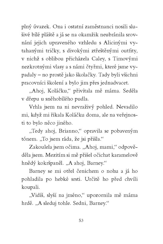 Taylor, Saša a Kim přizvaly svou kamarádku Briannu, aby se k nim připojila a stala se novou členkou psího klubu, který před časem založily. Brianna má velkou radost, přesto se ale cítí trochu odstrčená. Psy miluje a sladkou fenku Lily by si nejraději vzala domů. Dokáže svou matku přesvědčit, aby jí to dovolila? Zbaví se pocitu, že je mezi kamarádkami „páté kolo u vozu“?