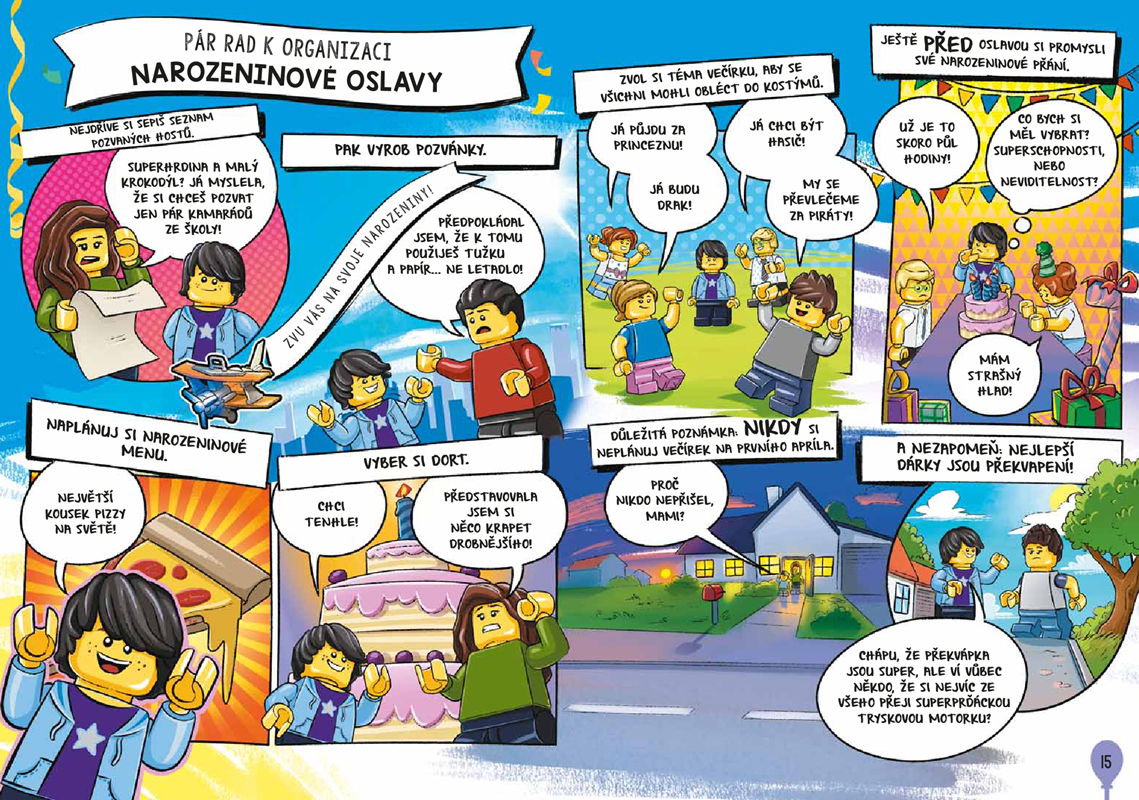 Je čas slavit! Sestav narozeninovou minifigurku a připrav se na oslavu, která se odehraje v této knize nabité úkoly. Najdeš v ní spoustu samolepek, hádanek, bludišť, obrázků k nakreslení a vymalování, plakát, a dokonce i speciální narozeninový příběh. Tak popadni pastelky a pera a hurá na párty!