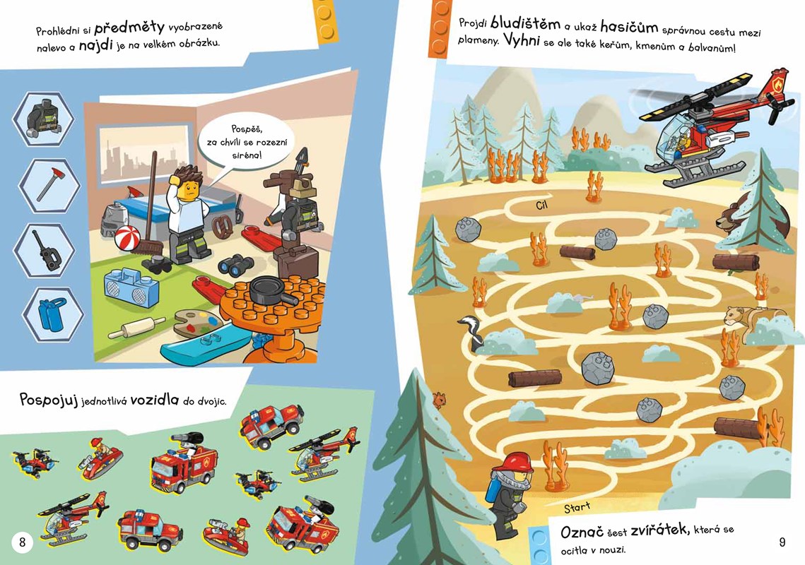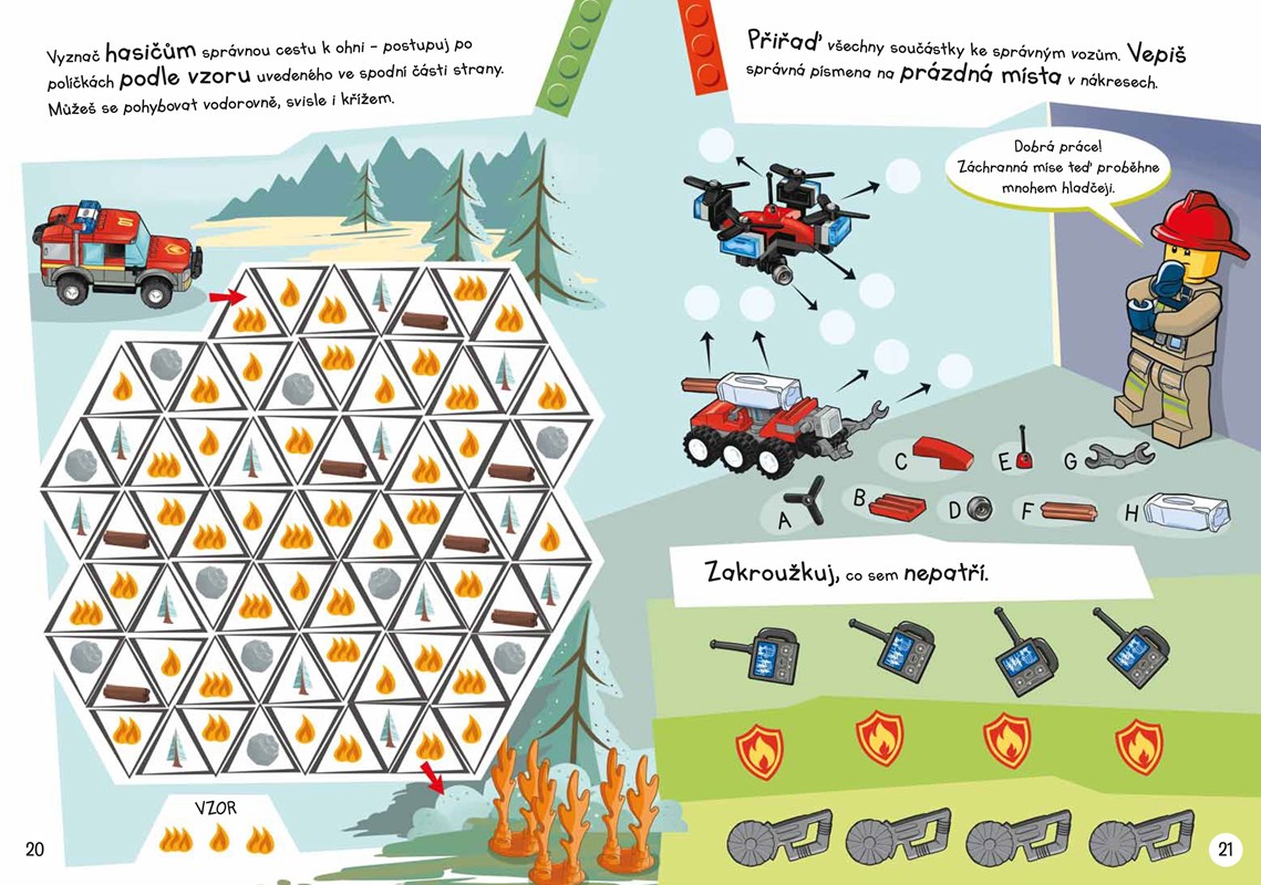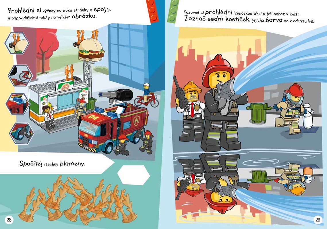 Jste připraveni na nálož pořádné zábavy, která na vás čeká v této LEGO® City hasičské knížce? Přidejte se k partě hasičů a pomozte jim uhasit požár tím, že vyřešíte hádanky, přečtete si výpravný příběh, a dokonce chytnete komiksového padoucha. Sestavte si vlastní minifigurku hasiče a hurá do akce!