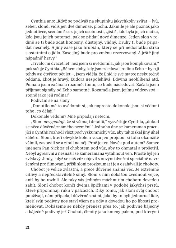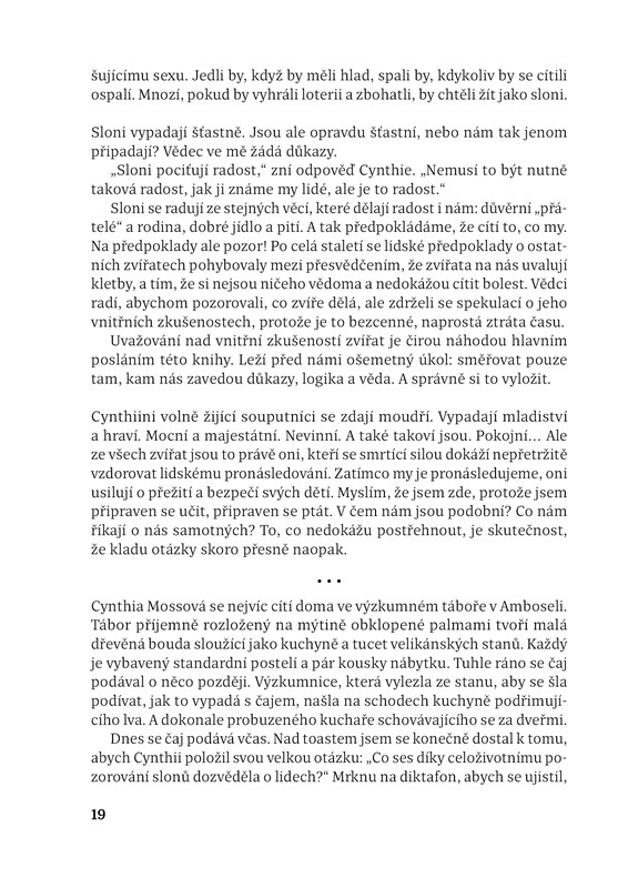 "Celý život jsem pracoval s mnoha zvířaty, žil jsem s nimi a studoval je jak v jejich, tak v našem světě. Čím více času jsem s nimi strávil, tím více se ve mně šířil, prohluboval – a utvrzoval – pocit sounáležitosti. Právě tento pocit se vám na následujících stránkách pokusím zprostředkovat.“ „Porozumět ostatním zvířatům není módní záležitostí. Selžeme-li, urychlíme tím jejich záhubu a úpadek našeho světa. Pokud bychom se chovali ke zvířatům tak, jak si zaslouží, krutost lidí vůči svému vlastnímu druhu by vynikla o to děsivěji. Potom bychom mohli obrátit naši pozornost k dalšímu kroku za hranicemi lidské civilizace: humánní civilizaci. Spravedlnost pro všechny. … Náš druh rozumí světu nejlépe ze všech, a přece s ním má ten nejhorší vztah.“