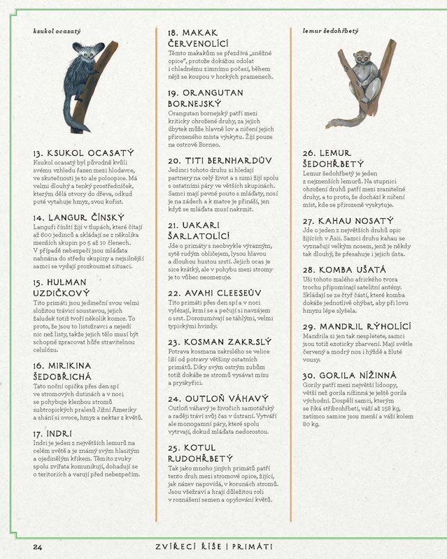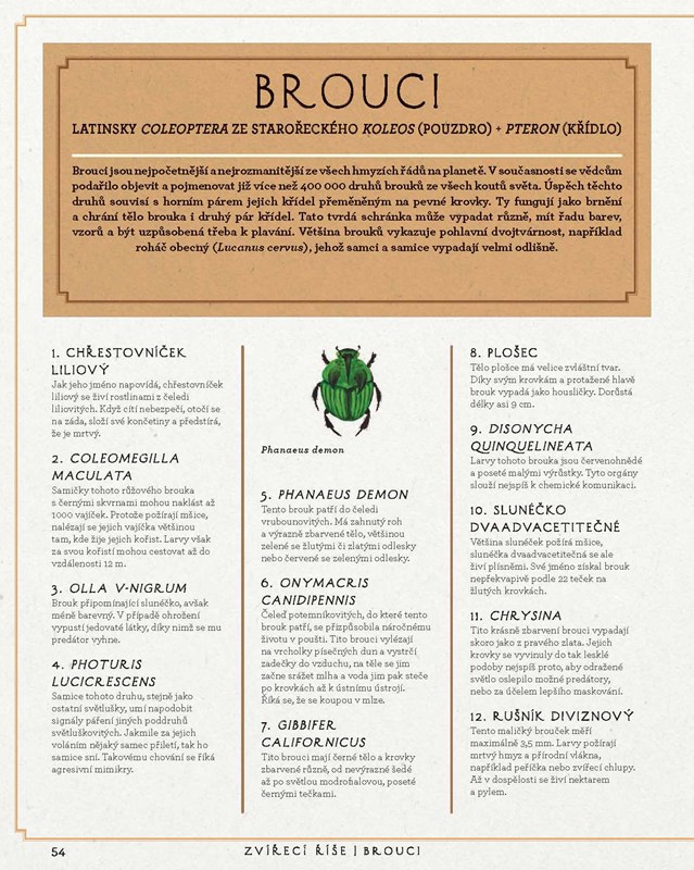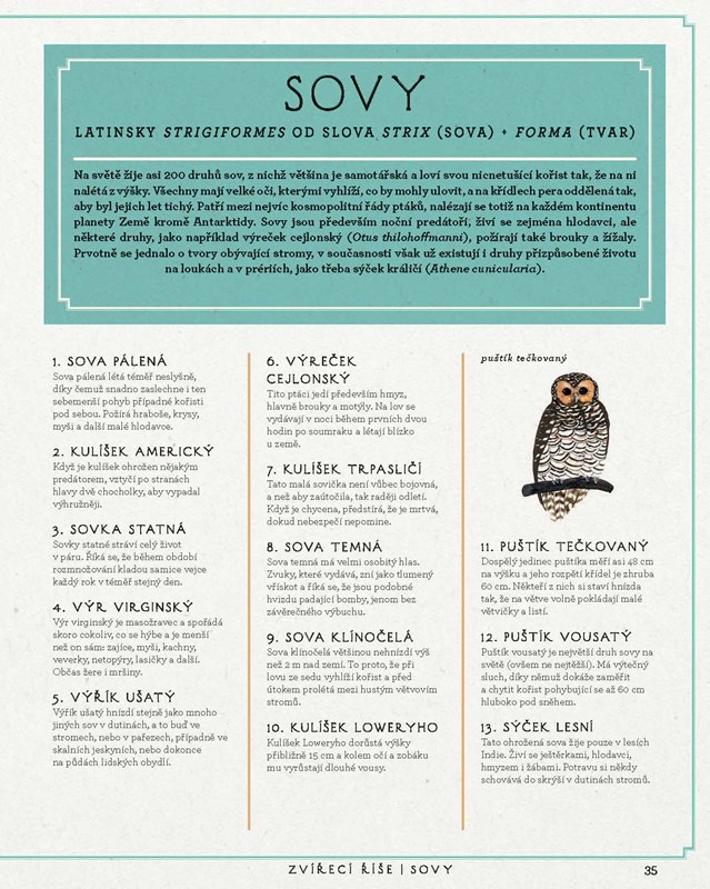 Co má rypouš sloní společného s leopardem? A co páv s krocanem, nebo dokonce outloň s gorilou? Kniha Zvířecí říše oslavuje obrovskou rozmanitost živočišné říše. Popisy nejvýraznějších zástupců jednotlivých skupin živočichů tu ožívají v nádherných ilustracích, díky nimž můžeme překvapeně sledovat, kolik různých barev zvířata mají a jak moc se mohou lišit velikostí a svými vlastnostmi. Vstupte do Zvířecí říše a poznejte živočichy planety Země!