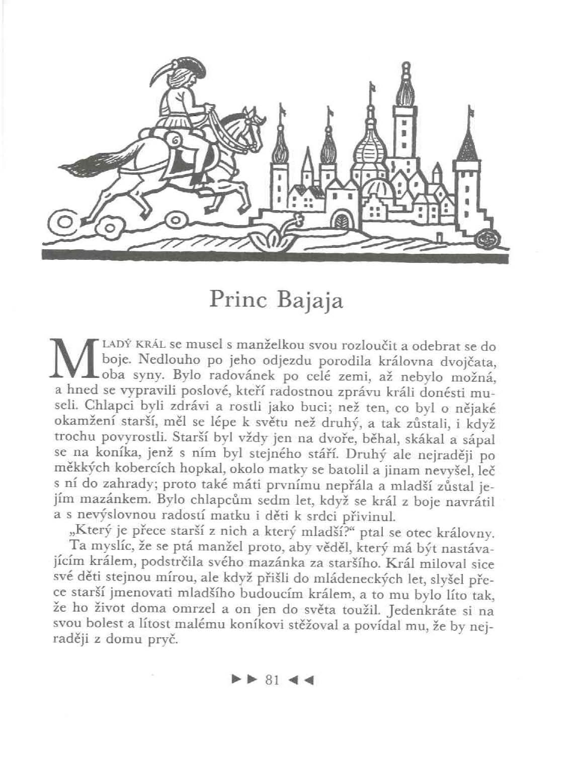 o Divotvorném meči, Lesní žence, Moudrém zlatníkovi, Princi Bajajovi a další báchorky. Pohádky doprovázejí