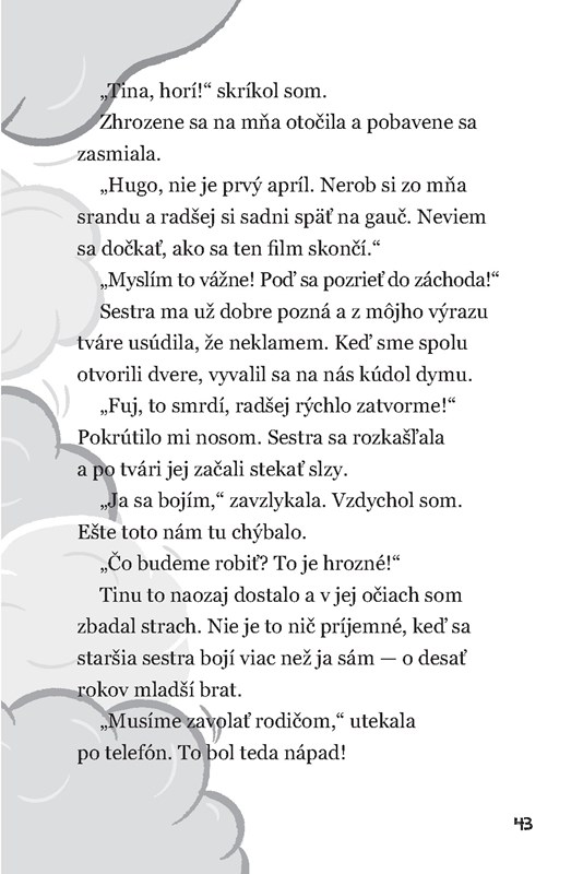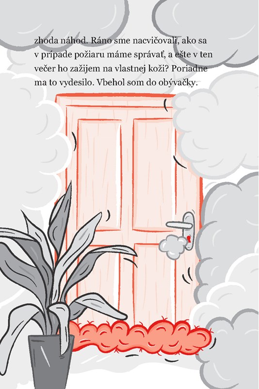 Hugo ešte v ten večer ucíti doma štipľavý smrad a zazrie dym… POMOC, HORÍ!