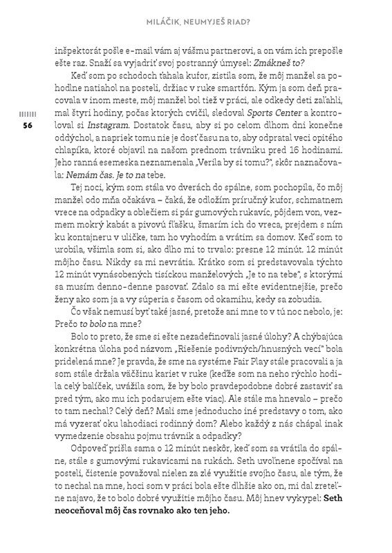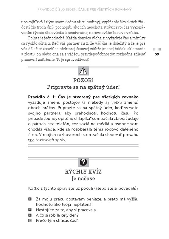 „Pôsobivý debut ... Páry, ktoré hľadajú spôsoby, ako lepšie riadiť svoje rodiny a dosiahnuť rovnováhu v domácnosti, si určite prídu na svoje. Eve Rodsky im totiž ponúka jednoduchý systém, vďaka ktorému vyhrávajú všetci.“— Publishers Weekly
