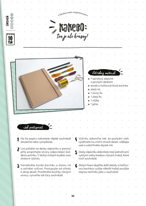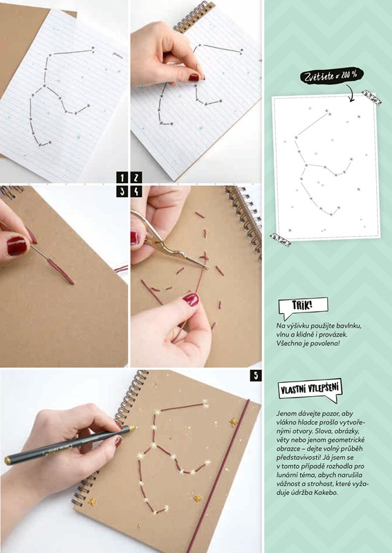Při samotné tvorbě zápisníků se navíc naučíte různorodé DIY (do it yourself) techniky (vyšívání, skládání, lepení, šití, kreslení, tkaní apod.) a také dostanete cenné tipy, jak uspořádat a zaplnit každou jejich stránku!