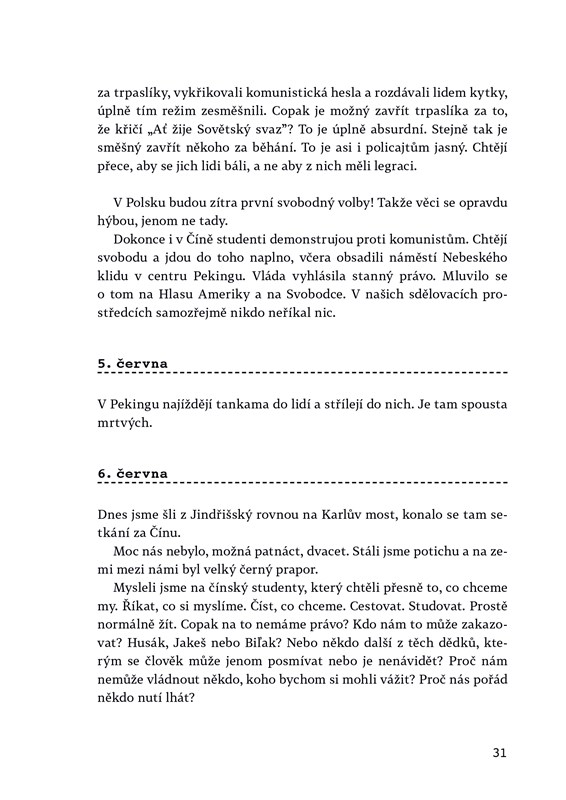 „Máme holý ruce” je autentický deník studentky z doby převratu, ale zároveň i historický román, ve kterém jsou popsány události tak, jak se skutečně staly.