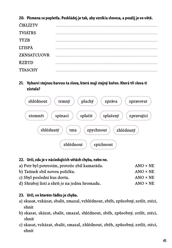 Potřebují si vaše děti zopakovat nebo procvičit, kde se píše s/z, mě/mně či ú/ů? Nabídněte jim zábavnou cvičebnici plnou aktivit, úkolů, křížovek a doplňovaček.