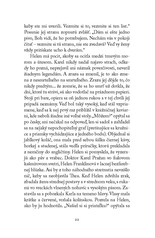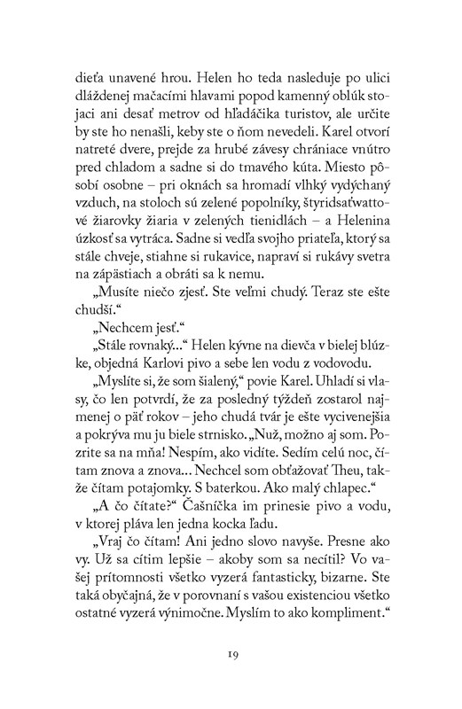 Mysteriózny dej sa mieša s históriou a vytvára pulzujúcu bránu pre strach. Keď čítate túto knihu, ste ochotní uveriť všetkému, aj keď sa to bije s vaším racionálnym ja. Spisovateľkin štýl písania vytvára dojem temnej rozprávky, v ktorej sa udeje naozaj hocičo. Ale neuveríte, akú hrôzu môžete zažiť na konci. Bude vás to v noci mátať. Možno by ste to nemali čítať. A možno áno... Pridávam však menšie upozornenie: Ak milujete horory, toto by vás mohlo zaujať. Ak sa na druhej strane držíte na kilometre ďaleko od „duchárskych vecí“, radšej sa na toto dielo ani nepozerajte. Ja viem, že druhý raz ho už neotvorím, aj keď je dobre napísané, má hĺbku a čarovného rozprávača. No je pre mňa príliš temné.