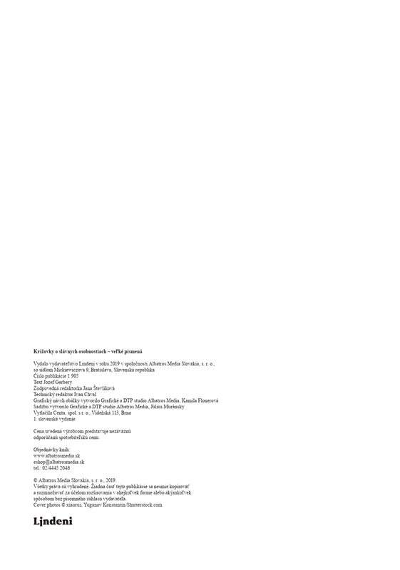 Zaujíma vás, aké príbehy sa skrývajú za slávnymi menami? Radi sa dozvedáte rôzne kuriozity, ktoré nie sú každému známe? S čím si nevedel rady Ľudovít Štúr? O čom sníval Michael Jackson? Nazrite do života svetových aj slovenských osobností a zabavte sa pri lúštení viac ako stovky zaujímavých krížoviek! Veľké písmená sa navyše postarajú o pohodlné čítanie a lúštenie.