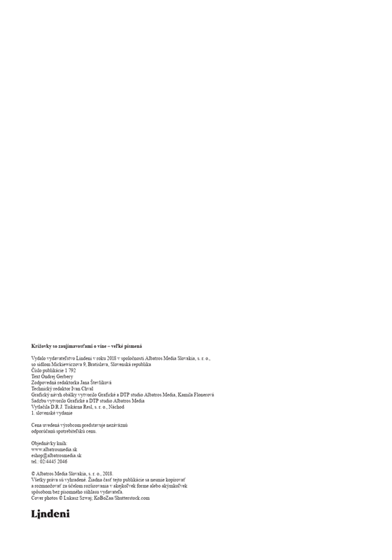 Vezmite si do ruky pohár vína a uvoľnite sa pri lúštení krížoviek plných zaujímavých faktov o tomto nápoji. Dozviete sa rôzne kuriozity o jeho výrobe či histórii, nahliadnete do tajomstiev someliérstva – a výborne sa pritom zabavíte. Spestrite si chvíle oddychu lúštením viac ako stovky krížoviek. Veľké písmená sa navyše postarajú o pohodlné čítanie a lúštenie. A nezabudnite: in vino veritas!