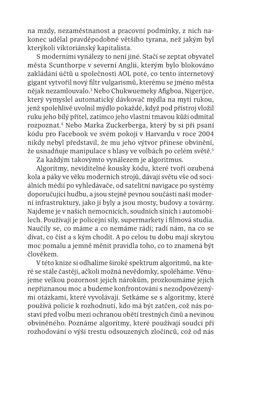 Umělá inteligence budí vášně – jedni ji vynášejí do nebes, jiní v ní vidí zkázu lidstva. Není už načase, abychom zjistili, jak je to doopravdy? Matematické algoritmy dnes zasahují skoro do všech oblastí lidské činnosti, aniž bychom si to uvědomovali. Ať už jde o zdraví, dopravu, justici, hudbu, obchod či reklamu, matematička Hannah Fryová vám na jasných a zábavných příkladech ukáže skutečné možnosti a omezení algoritmů, jež řídí i vaše životy.