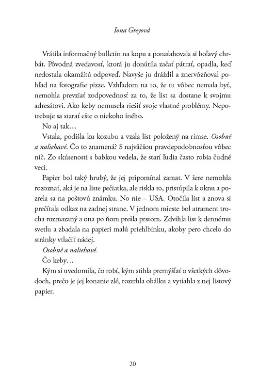 Knihu Listy, ktoré nikto nečítal som si všimla, keď vyšla v českom jazyku. Som rada, že som počkala na slovenské vydanie. Obálka je nádherná a Iona Greyová si pre čitateľov pripravila krásny príbeh.