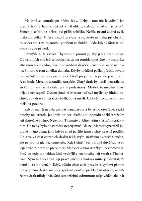 Draci i lidé zjišťují, že je těžká cesta neznámou divočinou zvláštním a nebezpečným způsobem mění. Vzájemné pouto se sice upevňuje, všechny však sužuje hlad, povodně a predátoři. Ty největší hrozby však číhají přímo mezi nimi a snižují šanci na to, že všichni dorazí Kelsingry živí.