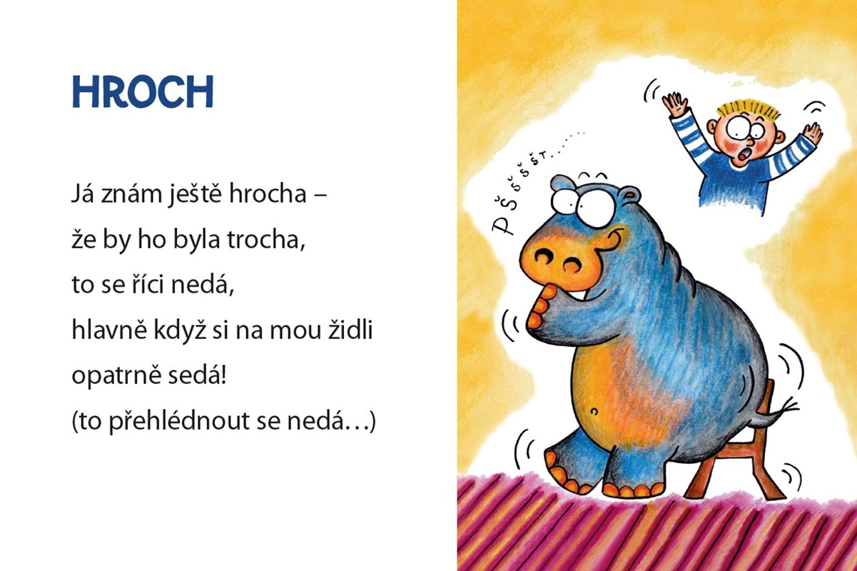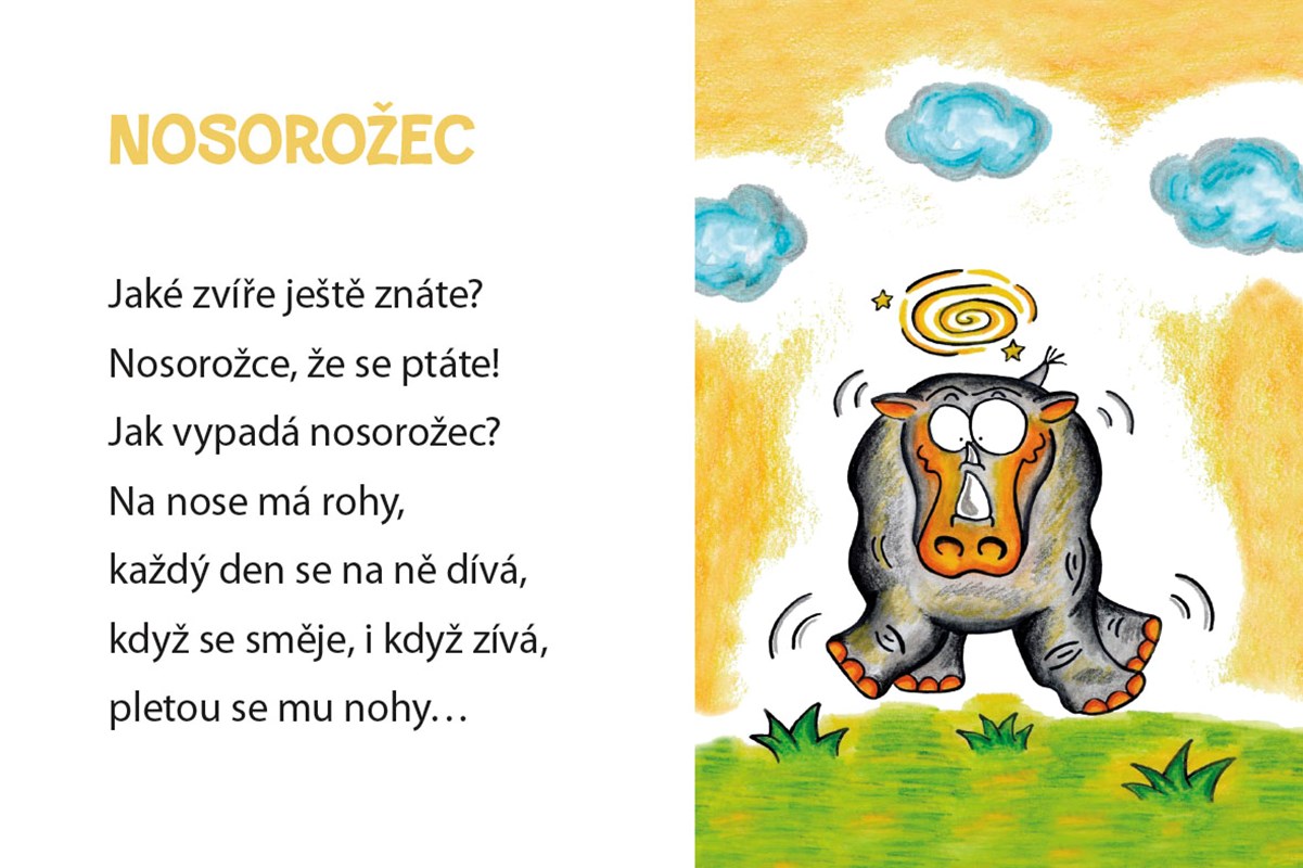 Leporelo pro nejmenší plné jednoduchých říkanek a veselých obrázků. Vtipné veršíky o žirafě, opičce, slonovi nebo zebře si děti zamilují, a všechna zvířátka si tak díky nim snadno zapamatují.