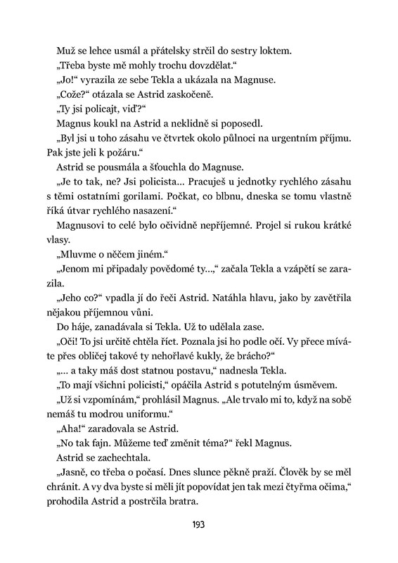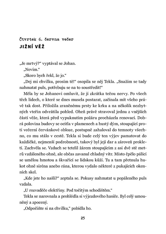 Tekla Bergová, nadaná mladá lékařka, má mimořádnou psychickou schopnost – fotografickou paměť. Co jednou uvidí, už nikdy nezapomene. Když ve Stockholmu dojde k požáru věžáku a do nemocnice přivezou neznámého, těžce popáleného pacienta, Tekliny zasunuté vzpomínky se probouzejí a události začínají nabírat spád. Dopady tragédie totiž pocítí nejen zaměstnanci nemocnice, ale i policie a zločinecké podsvětí.
