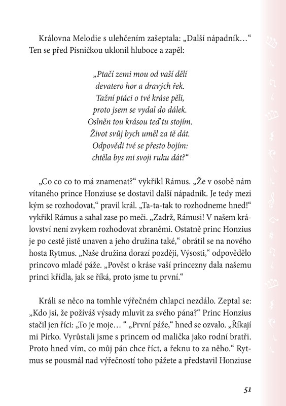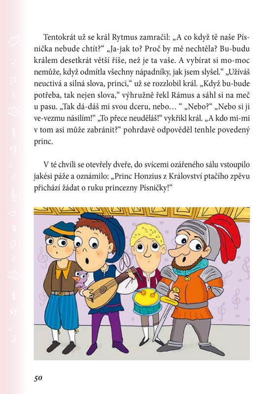 Bylo jednou jedno království, ale nebylo to království jen tak ledajaké! Tohle byste marně hledali na mapě nebo na glóbusu. Leželo totiž schované za sedmero notovými osnovami a sedmero křížky, béčky či odrážkami, za hromadou not… a jmenovalo se Hudební.