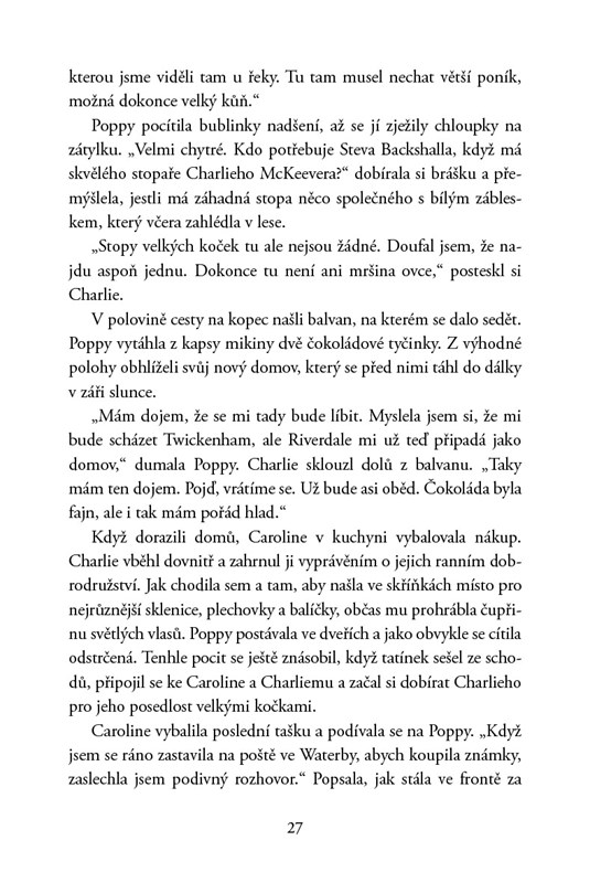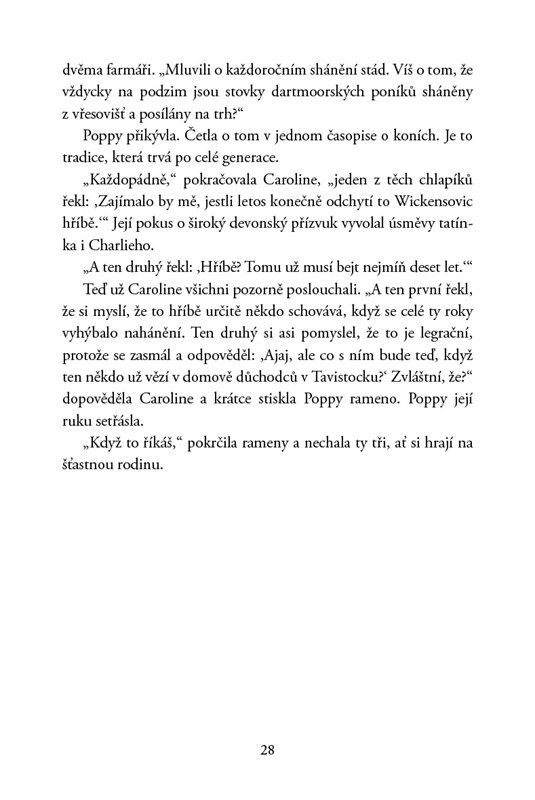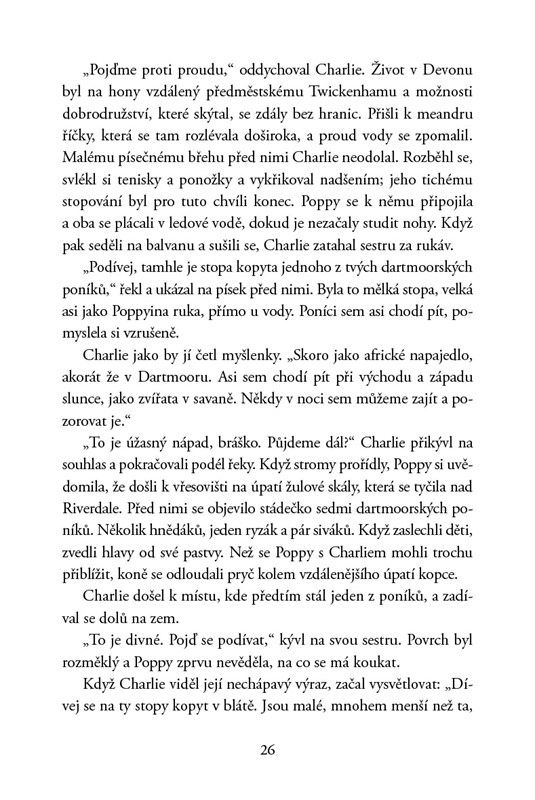 Pak se ale dozví, že v lese žije zdivočelý poník, který se nikdy nenechal chytit. Jednoho dne ho u řeky zahlédne a okamžitě mezi nimi vznikne pouto. Poník nevypadá zdravě a tradiční odchyt volně žijících poníků pro nadcházející dražbu se blíží. Poppy nechce, aby ho chytili a vrátili zpět krutému majiteli, od něhož před lety utekl, a tak začne plánovat záchrannou akci. Kdyby jen tušila, že tím ohrozí svůj i bratrův život…