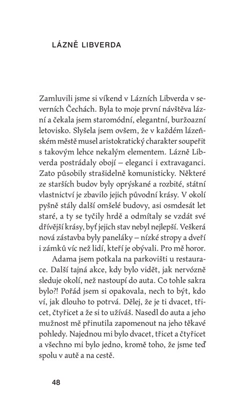 Američanka Elise najde u řeky v srdci Evropy nový domov, zároveň však ztratí manžela. Kořeny, které zapustila v postkomunistické Praze, se najednou nezdají tak pevné, jak si myslela. Kde je opravdu doma? Jaké tajemství skrýval její muž? A může si dovolit novou lásku? Mysl i city čtyřicetileté ženy jsou rozbouřené stejně jako její milovaná řeka, která se vylila z břehů a znovu hledá cestu, kudy klidně proudit.