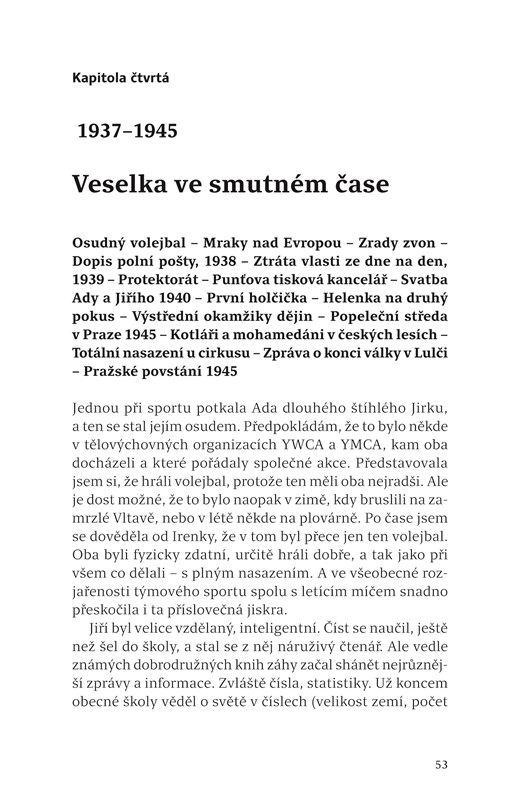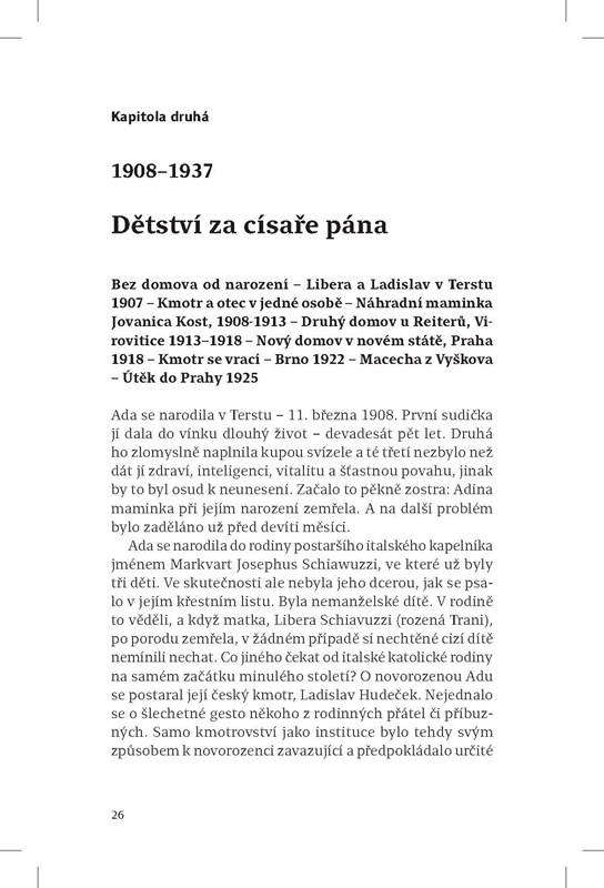 Pohnutá životní pouť manželů Ady a Jiřího trvala bezmála sto let a byla neobyčejně barvitá, dramatická a vpravdě inspirující. Vedla napříč bouřlivým 20. stoletím přes jižní přímoří tehdejšího Rakouska-Uherska do Prahy, Brna, Posázaví, jáchymovského a dalších komunistických koncentráků nakonec až kanadského Edmontonu. Jiří, filolog a přírodovědec, byl středoškolským učitelem, muklem, spisovatelem, vědcem a ke konci života se dočkal mnoha ocenění. Ada, ač prožila téměř celý život v domácnosti, neměla život o nic všednější a hledání domova, pro mnohé v 20. století tak typické, je provázelo celý život.
