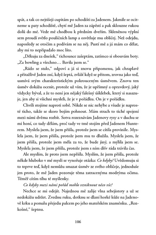 Po několika měsících ale na Jadena náhodou narazí. A dřív, než stihne znovu vystavět svou obrannou zeď, jsou zpátky staré vzpomínky a city. Málem spolu před nehodou začali chodit, a i když se to snažila vytěsnit, o to víc si nyní uvědomuje, jak moc jí chyběl.