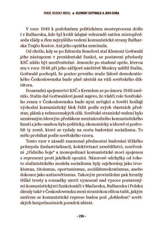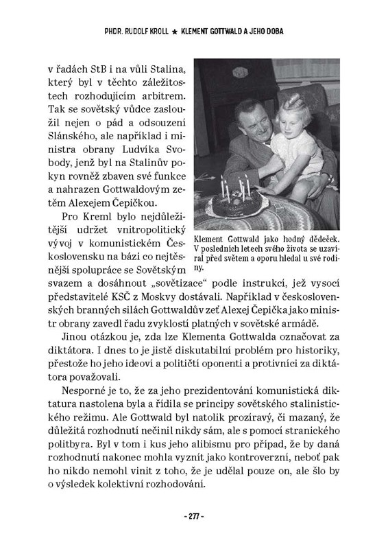 Klement Gottwald byl po komunistickém převratu v roce 1948 oslavován i nenáviděn. Proto se i po sedmdesáti letech musíme ptát: Kdo vlastně byl Klement Gottwald a co o něm dnes vůbec víme? Jak mohl žít s vědomím, že jako hlava československého státu nechával zabíjet nevinné odsouzence? Nebo snad věřil v oprávněnost vynesených hrdelních trestů? Klement Gottwald se stal jednou z děsivých a nejkontroverznějších postav našich novodobých dějin. V knize Gottwald a jeho doba se autor snaží postihnout především nejdůležitější okamžiky života tohoto „prvního dělnického prezidenta“ a dobrat se alespoň jednoho základního poznání – jak a proč Gottwald dospěl až do fáze prosazení komunistické totality, v níž idea třídního boje a třídní nenávisti sehrála v našem státě tak děsivou roli.