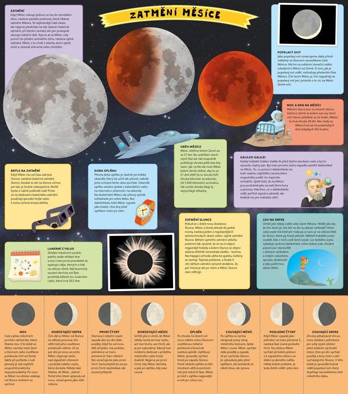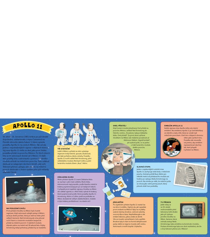 Podívejte se na noční oblohu. Co vidíte? Velikou kulatou pobledlou hlavu měsíce. Úplňkově září do všech stran. Odjakživa ten stříbrný poutník ze své výšky provokoval a dráždil lidské pokolení. Snílci, romantici, dobrodruhové i pragmatičtí vědci, ti všichni toužili poznat a odhalit jeho tajemství. Máte to také tak? Prosím, neváhejte a nastupujte. Velká kosmická výprava právě začíná. Na šesti rozkládacích mapách projdete měsíc křížem krážem, v šesti kapitolách se seznámíte s prvními astronauty, prvními měsíčními cestovateli, prvními raketoplány i těmi nejmodernějšími vesmírnými vozítky. Připoutejte se, oblečte skafandry a tři, dva jedna, start….vyráááážíííme…