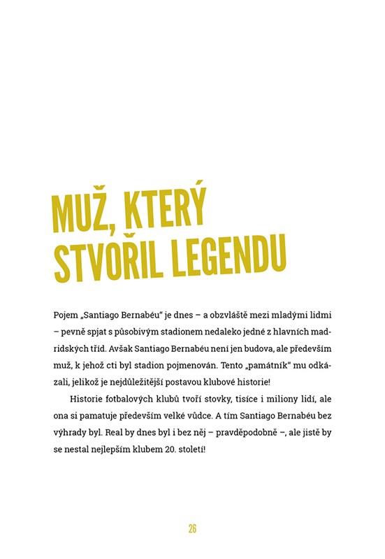 Skvělý průvodce po bohaté historii i současnosti nejslavnějšího fotbalového klubu. Nejen mladší fotbalové fanoušky provede po místech, s nimiž je klub spojen, představí spoustu slavných hráčů včetně zástupců českého a slovenského fotbalu, trenérů i dalších lidí, bez nichž by Real Madrid nebyl světoznámou značkou. To vše atraktivní formou s mnoha krásnými fotografiemi.