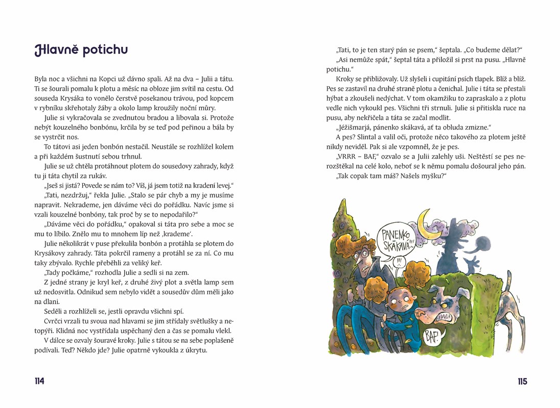 Julie se nemůže dočkat, až se s tátou začtou do nové knížky o pirátech. Když se pak v jejím pokojíčku objeví pirátská truhla se vzácným pokladem, která ale hned druhý den zmizí, vydá se společně s kapitánem pirátů na záchrannou výpravu. Pátrání je zavede až do honosného sídla chamtivého, nevypočitatelného souseda Krysáka. Podaří se jim poklad získat zpět?