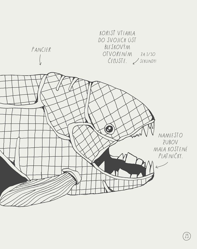 Maja Säfström je výnimka. To, čo začalo ako instagramová kratochvíľa švédskej architektky, je také milé, že sa to uživí aj ako detská kniha. Takže po veľkom úspechu Ilustrovaného atlasu neuveriteľných faktov o zvieratách (ešte celkom nedávno patrila do prvej stovky najpredávanejších kníh na Martinuse), vyšla aj jeho dvojička, Ilustrovaný atlas najčudesnejších prehistorických zvierat. V tomto kontexte vôbec nevadí, že toto kompendium je znôškou bizarností – prehistorické zvieratá naozaj boli čudesné tvory. Napríklad gerrothorax mal nohy, no nevedel chodiť. Používal ich len na plávanie a lozenie. Jeho telo bolo meter dlhé a také sploštené, že oči musel mať navrchu hlavy. Deti sa najviac chichúňali, keď sme si prečítali, že pri otváraní úst pohyboval hlavou, nie čeľusťou – ako záchodová doska.