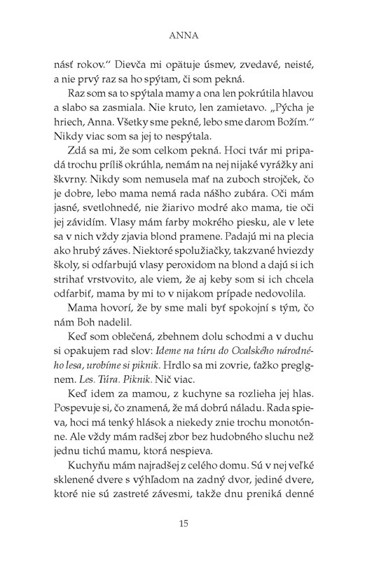 Kniha vás bezpochyby vtiahne do deja od prvej stránky. Páči sa mi, že sa tu odvíjajú dva príbehy, ktoré spolu súvisia. Jeden rozpráva Anna a druhý Rosie. Dievča, ktorému zmizla pred pätnástimi rokmi sestra. Už od začiatku viete, ako sú prepojené. Otázkou celý čas zostáva, ako sa to stalo? A hlavne prečo? Anna začne zisťovať svoj pôvod, Rosie zase začne pátrať po svojej sestre. Obe objavujú šokujúce skutočnosti a vy spolu s nimi.