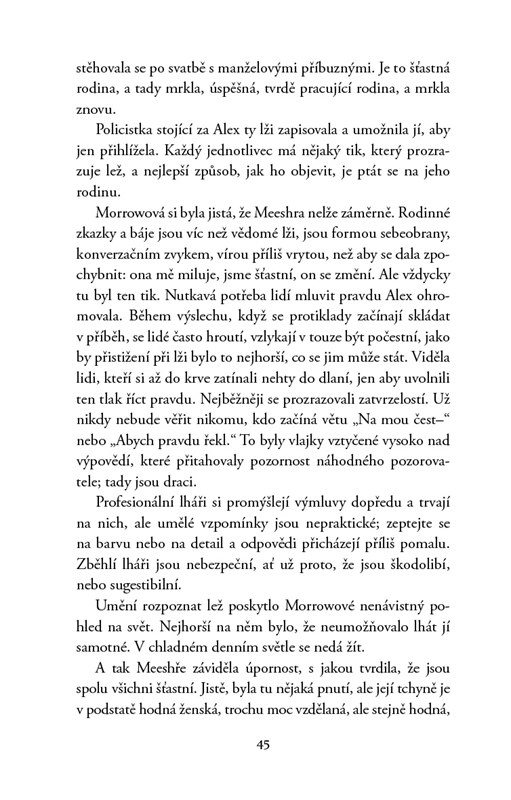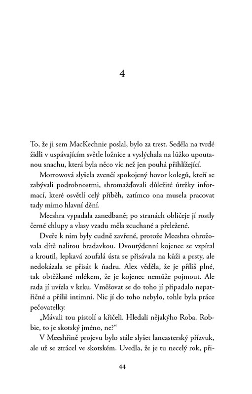 Klid glasgowského předměstí je narušen brutálním přepadením. Ozbrojení muži v kuklách obsadí zdánlivě obyčejný rodinný dům a hledají muže, kterého nikdo nezná. Padne výstřel a ozbrojenci zmizí i s rukojmím a požadavkem dvou milionů liber. Pro vyšetřovatelku Alex Morrowovou to může být klíčový případ. Pokud by dostala šanci. Je průbojná, ctižádostivá a zoufale se snaží skrýt kostlivce ve svém šatníku – to jí na popularitě mezi kolegy nepřidá. Čím více se noří do případu, zjišťuje, že není jediná, která něco skrývá, a při odhalování tajemství jedné rodiny musí chránit to své…