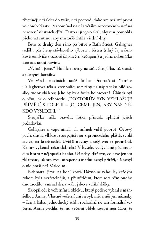 Je týden před Vánocemi. Na rušnou pobočku pošty v Glasgow vtrhne lupič s kalašnikovem. Přinutí zákazníky lehnout tváří k zemi. Upravený starší muž se zvedne a jde pomáhat lupičovi. Mlčky plní pytle penězi a odnáší je ke dveřím. Pak otevře dveře a pokyne hlavou. Lupič ho rozstřílí na kusy. Vyšetřovatelka Alex Morrowová se chopí pátrání. Nikde žádné vazby na lupiče. Ani starému pánovi se nedá nic vytknout. Pátrání po střelci dovede Morrowovou do podivného světa stranické politiky a života Davida Gillespie, populárního politika, jehož sexuální výstřelky dělí politickou scénu na dva tábory. Ať se děje cokoliv, Morrowová netouží po ničem jiném, než se vrátit domů k manželovi a svým dvojčatům, než pochopí, co vyšetřování případu znamená: žádný kout města není bezpečný a její angažovanost bude větší, než by si kdy myslela.