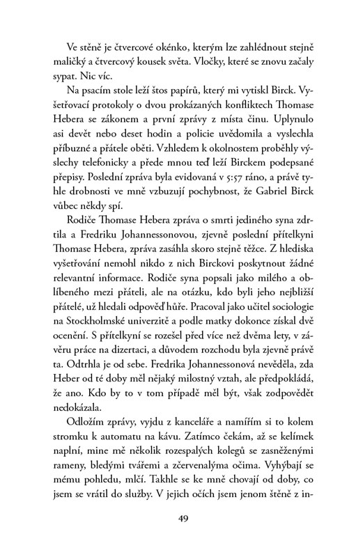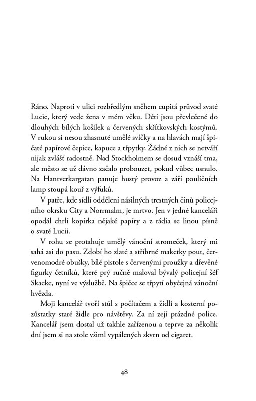 Zavražděný sociolog, vyděšený šestiletý svědek a ohrožení násilnickými gangy: nový případ Lea Junkera mu návrat k policii nijak neusnadňuje. Všem musí dokazovat, o čem se dennodenně snaží přesvědčit sám sebe – že je fyzicky i psychicky zase fit a plně práceschopný. Když Leo s kolegou Birckem konečně objevují horkou stopu, je jim případ odebrán a předán švédské tajné službě. Ale to tím víc probouzí Leovu ctižádost a posiluje jeho pocit, že některé důležité detaily tohoto případu by měly být ututlány…