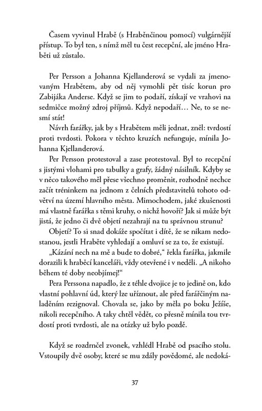 „Zabiják Anders“ je čerstvě na svobodě. Potřebuje novou práci a stejně tak přátele. Do rány mu přijde vychytralá farářka Johanna Kjellanderová, která se kvůli svému ateistickému smýšlení ocitne na dlažbě. Spolu s hotelovým recepčním Perem Perssonem založí společný podnik. Kšefty běží báječně. Dokud se zabiják Anders nezačne ptát po vyšším smyslu toho všeho. Jenže bossové stockholmského podsvětí s ním mají nevyřízené účty a zabijáka Anderse i s jeho přáteli pořádně zmáčknou. Jonas Jonasson si šibalsky a neuctivě bere na mušku lidskou chamtivost a zabijákem Andersem vytvořil nezapomenutelnou postavu antihrdiny.Zabiják Anders a jeho přátelé (a sem tam nepřítel) je třetím románem Jonase Jonassona po světově proslulém Stoletém staříkovi, který vylezl z okna a zmizel a Analfabetce, která uměla počítat.