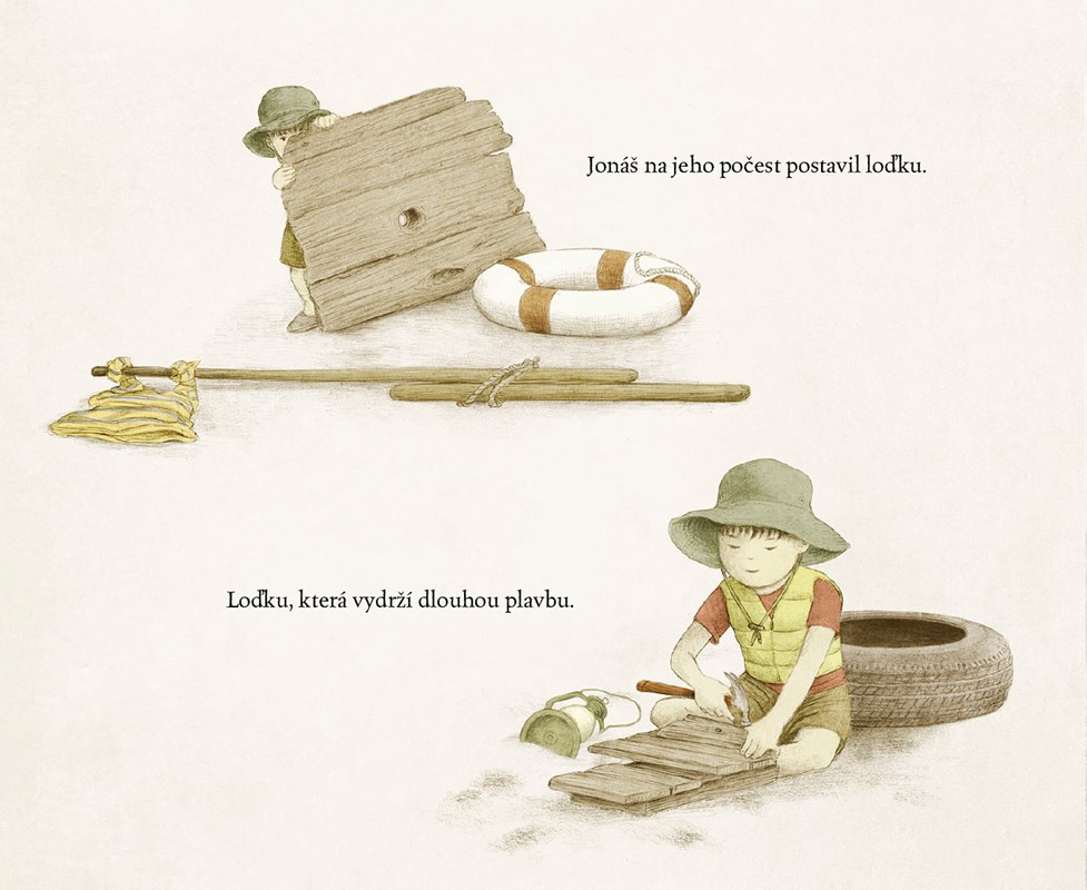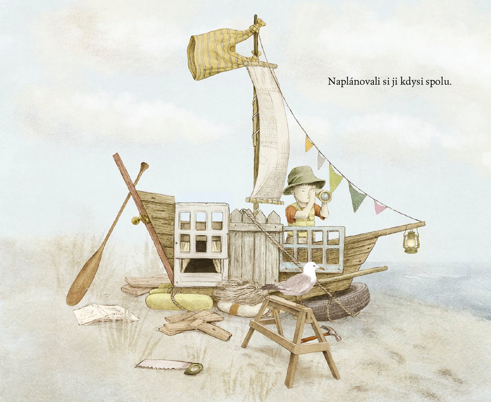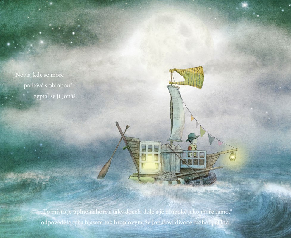 Jonáš žije u moře a pokaždé, když z okna domu pohlédne na jeho hladinu, vzpomene si na příběhy, které mu vyprávěl dědeček. Na magické příběhy o místě, kde se moře potkává s oblohou. Medúzy a velryby se tam vznášejí, zámky a ptáci plují. Jonášův dědeček už sice nežije, ale chlapec dostane nápad – na dědečkovu počest postaví loď a to místo, o kterém mu tolik vyprávěl, najde!